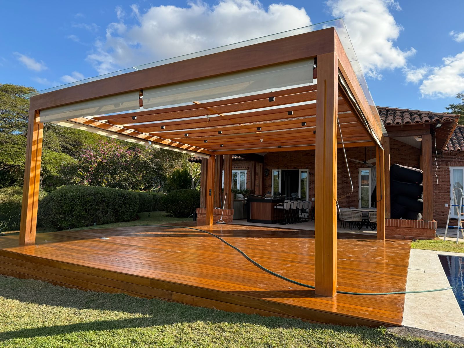 Tratamos cada deck e pergolado como uma obra de arte única, valorizando os veios e a cor natural da madeira.